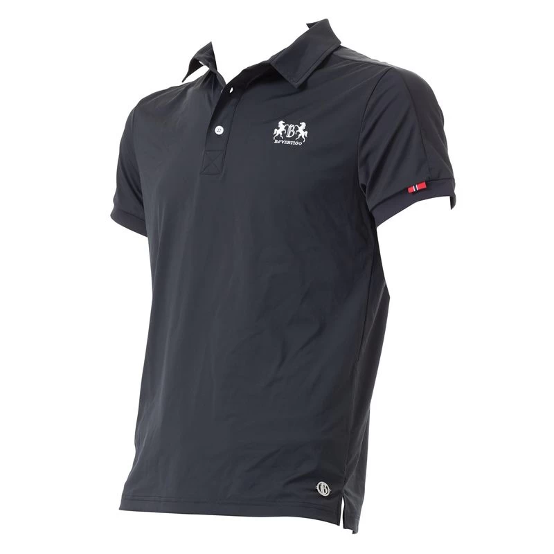 Our B Vertigo Flynn polo shirt is made from breathable piqu fabric that feels soft and cool against the skin. The monochrome shirt with delicate logo details on the chest and neck will easily fit into your riding wardrobe. Short sleeves and button closure make the shirt perfect for layering or wearing it on its own. Wear this polo shirt riding, in the stables or in your free time for a classy look.