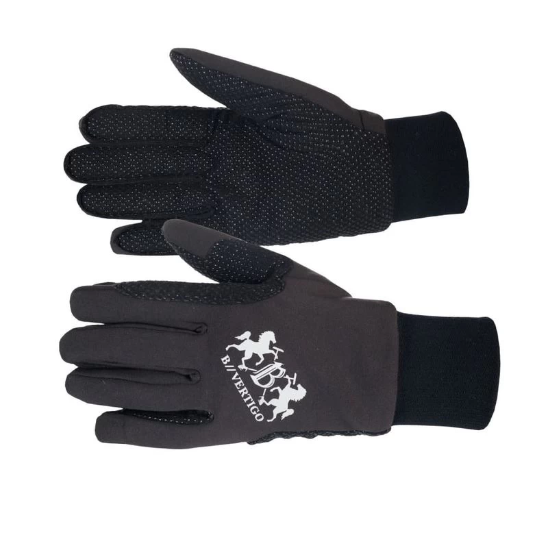 The windproof fabric is warm, soft and weatherproof for optimal winter riding. The anti-slip silicone print inside palm and fingers allows you to grip the reins. The B Vertigo logo looks great but is also reflective for safety. The soft knitted rib opening keeps the cold off of your body.