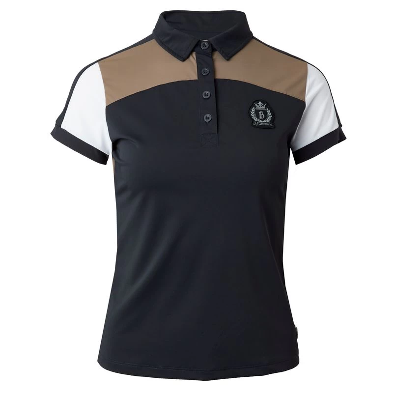 Our B Vertigo Alessa polo shirt is made from breathable piqu fabric that feels soft and cooling on the skin. The contrasting colors look unique, but the classic combinations will easily fit into your riding wardrobe. Short sleeves and button closure prevent you from overheating. Wear this polo shirt riding, in the stables or in your free time for a chic look. Also available in men’s cut (#33592).
