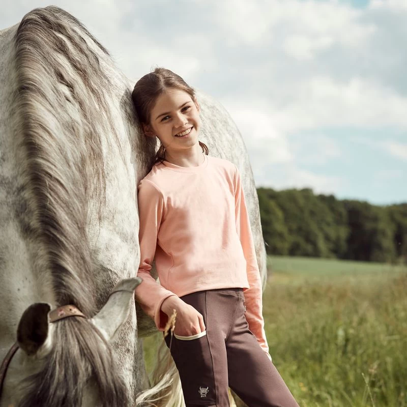 The Horze Morgan longsleeve shirt for kids is made from super soft material. The easy fit is comfortable for riding or every day. Pretty colors and the Morgan design adds fun to little riders’ wardrobes. Pair this shirt with the rest of our Horze Morgan range for a full outfit!