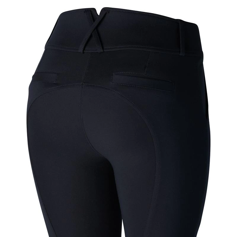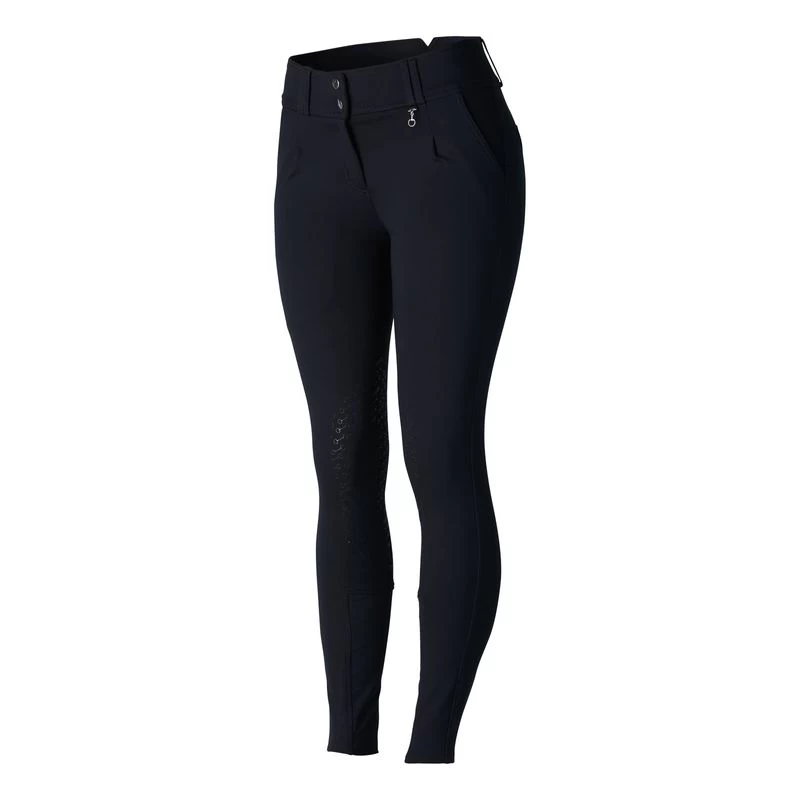 The Horze Angela breeches are made from super soft fabric. Their classic look is complemented by sophisticated pleats at the front. A high rise is flattering and ensures the perfect position for stomach and back, and the silicone knee patch gives flexibility in the saddle.