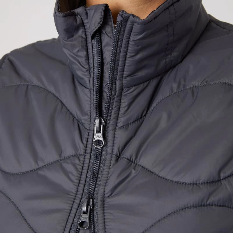 The B Vertigo Belle hybrid vest is made from light material that is warmly padded. Elastic fleece provides additional warmth, while breathable mesh inserts offer ventilation. The hood is attachable with press buttons. Two zipper pockets keep your belongings safe. Neutral colors are easy to incorporate into your riding wardrobe. Elastic hem and cuffs make sure this jacket stays in place. Also available as jacket version (#33625).