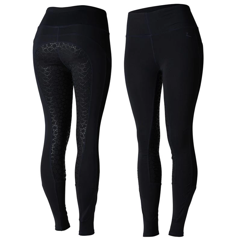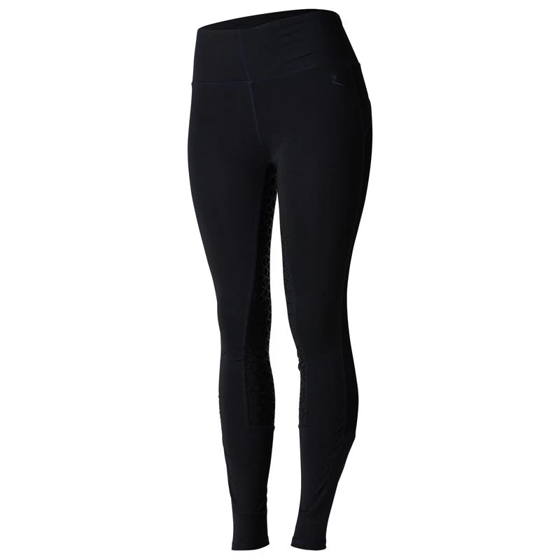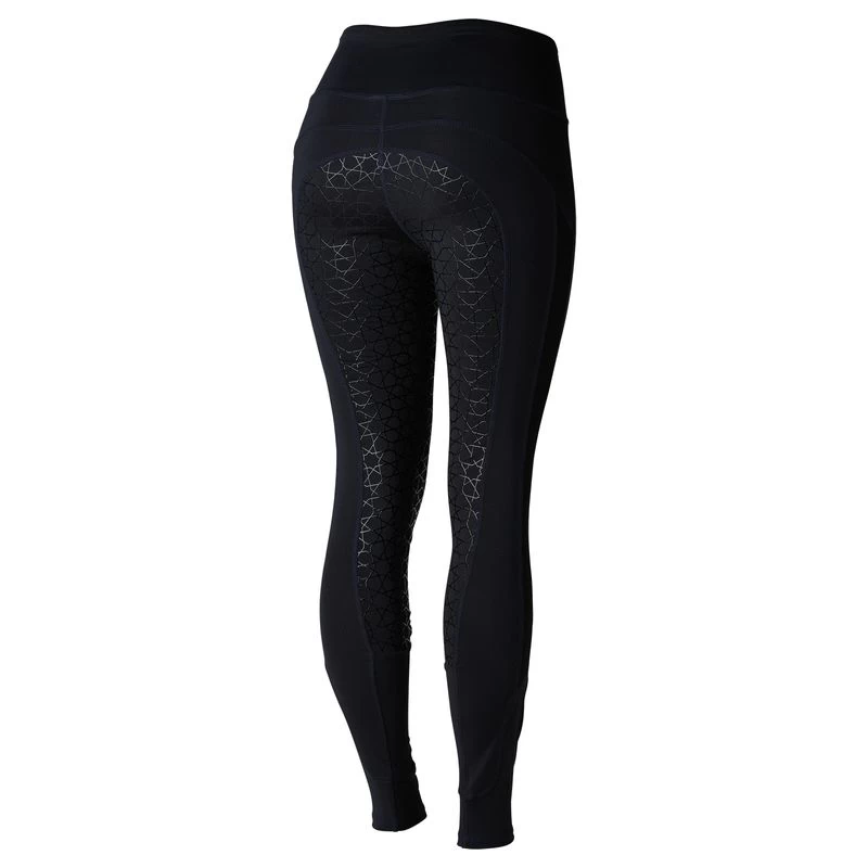 The Horze Women’s Betty Full Seat Tights with Mesh Inserts are designed with ample stretch and all day ultimate comfort. Features include a silicone printed full seat for a good grip in the saddle, as well as a wide, elastic waistband, and elastic leg bottoms. Pull on these stylish riding tights when a casual, quick choice is your wish for a no-nonsense, easy look. The classic color options make this a must-have. These women’s, soft, pull-on style tights are made from lightweight fabric. Mesh inserts are included for added breathability.