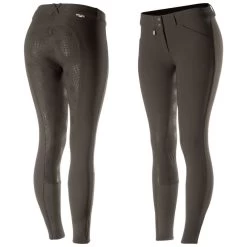 The Horze Grand Prix Full Seat Breeches with Silicone Grip are great breeches whether you’re riding in a clinic, a lesson, or in the show jumper arena. This new and improved classic breech will add a professional touch to your look. The cut is elegant, formal, and timeless with a silicone full seat that provides excellent grip in the saddle, a comfortable, contoured medium waistband that adds to the whole package, and a front zip with 2 front pockets. The Women’s Grand Prix Silicone Grip Full Seat Breeches are made from a functional, breathable fabric that has a water and dirt repellent surface with UV and UPF 50+ protection. Dust and grime won’t stick!