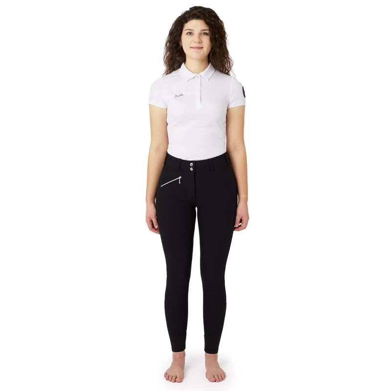 These affordable breeches are made with a high waist that is flattering and keeps them in place. The silicone full seat keeps you safely in the saddle. Elstastic leg bottoms fit comfortably under your favourite boots. Beautiful rhinestones along the back add a subtle shiny detail.