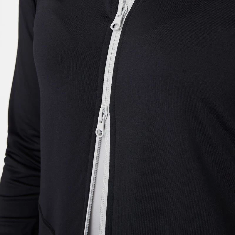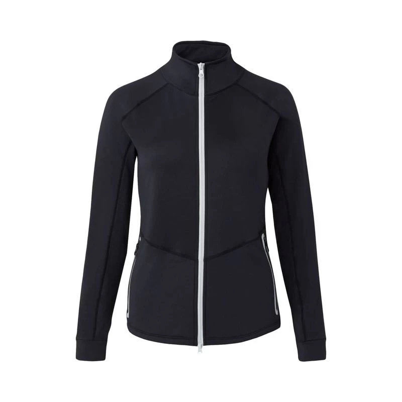 Smooth jersey fabric that avoids horse hair sticking to the material. For increased breathability, mesh panels are inserted at the back and below the sleeves. Brushed inside for a soft warm feel. The stretchy fabric in combination with the opening flap at the back hem gives you optimal freedom of movement. Zipper pockets at the front and sporty logo print on left sleeve.
