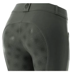 This elegant show coat is offered in a modern and stylish three button short style that is perfect for jumpers or eventers. Subtle tapered stitching adds a figure flattering touch at the waist with a matching design at the elbow. Offered in a modern, technical stretch fabric with three elegant buttons line each cuff to match the front and discreet zipper pockets are hidden at the hem. Gorgeous suede fabric adds a simple elegant touch at the collar.