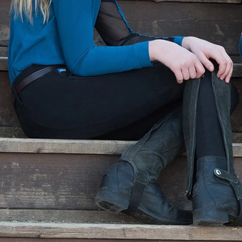 Classic Cadence have the pull on ease of tights, but the heft of breech fabric. This original design has full Cadence leg panels and gripper elastic at the ankle. Irideon’s patented design provides maximum comfort and full range of motion whether youre out on the trail or in the jump-off. The compression technology of the stretch-cord fabric supports muscles without constricting, preventing fatigue