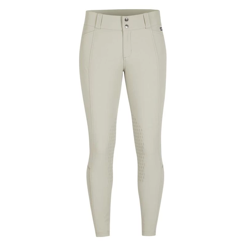 Thoughtfully placed, figure flattering seams, four-way stretch integrity, and Kerrit Sticks Silicone knee patches combine for a fluid, polished riding pant that helps women look and ride their best. This updated style now features quick-access front slash pockets, tailored front fly with two-snap closure, 2-inch comfort waistband, belt loops, and Euro seat styling.