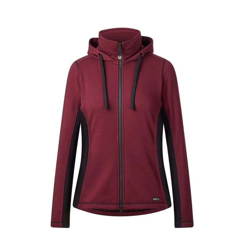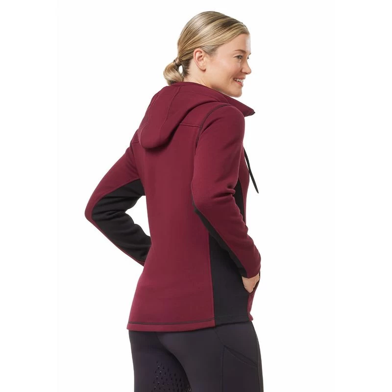 Full zip styling with luscious, plush fleece inside and a soft, matte exterior that sheds hay and dirt. Stretch panels free you to reach for forelocks and carve a flattering, feminine silhouette. Pop the hood on this tech top for post-ride warmth, but even hood down, the extra tall collar keeps you cozy. Two front hand-warmer pockets, plus a bonus inner pocket to keep your phone handy.