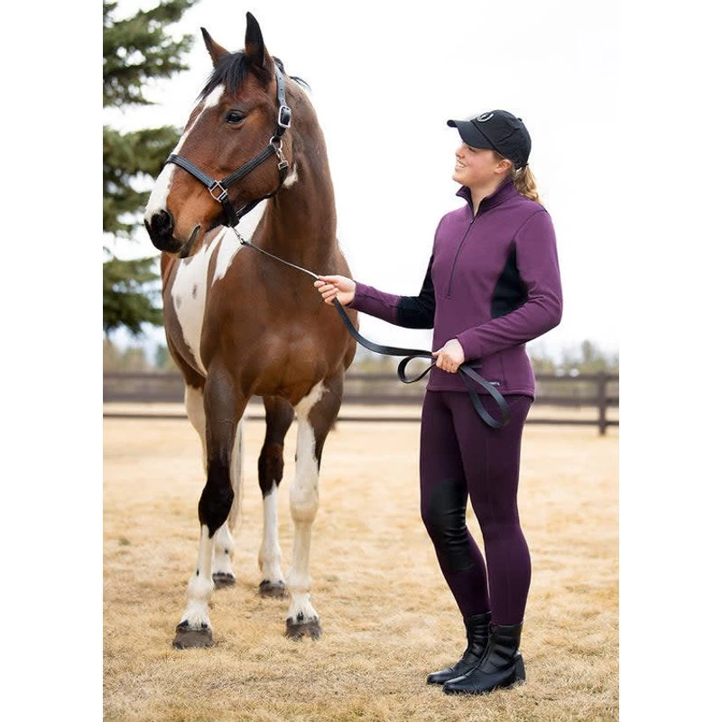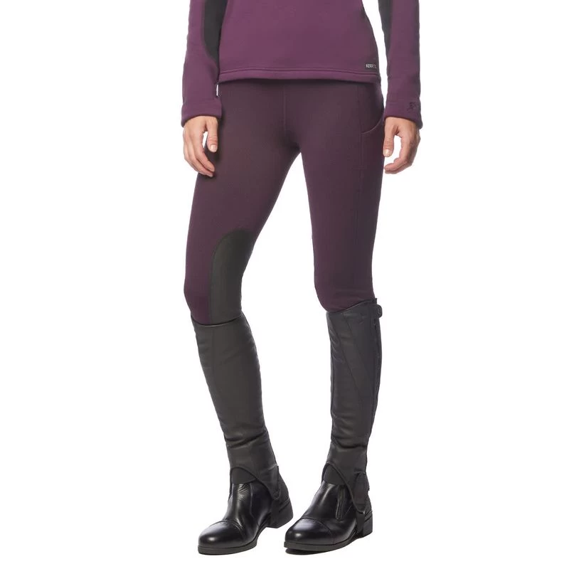 Super-cozy brushed fleece inside is perfect for riding indoors or as a layer outdoors when the temperatures drop. Higher, wide waistband is enhanced by four-way stretch with flattering compression. Two side pockets for treats and your phone. GripSoft knee patches for a flexible, secure grip.