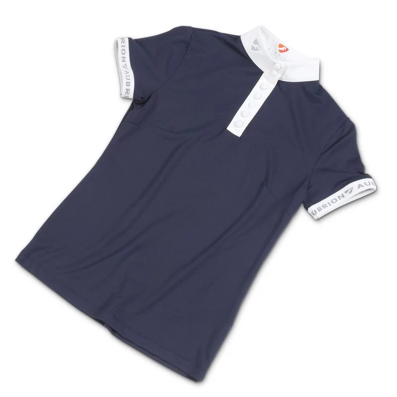 The Aubrion Chester Show Shirt has all the comfort and functionality of tech shirt. This stretch show shirt features a button tab front closure with tab collar. It is short sleeved, ideal for hot summer show days. The lightweight stretch fabric is form fitting, so it is smooth under your show coat. Colors have contrast white, or opt for the solid white version.